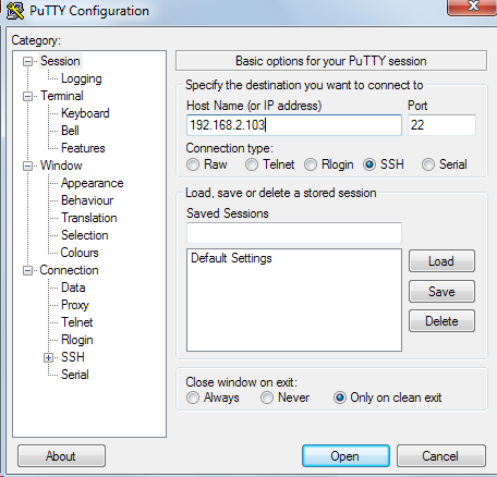(Hinweis: die meisten der folgenden Befehle können einfach in das putty-Fenster kopiert werden. Eingefügt wird mittels Rechtsklick.)