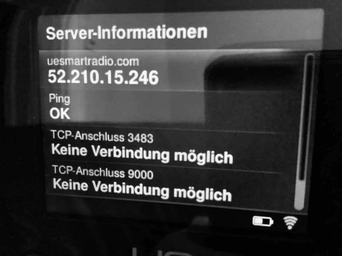 Ich bin neu hier im Forum und habe ein Problem bei dem ich einfach nicht mehr weiter weiß. Habe ein Logitech ue smartradio viele Jahre ohne Probleme im wlan Netz betreiben können. Jetzt aber funktioniert der wlan Zugriff auf den Server nicht mehr. Habe es per lan probiert und da ist alles gut. Server ist erreichbar. Das wlan Netz ist ok. Es geht auch ein Ping an den Server, ok , aber zum TCP Anschluss 3483 und 9000 ist keine Verbindung möglich. Habe den Router auch schon runtergefahren und das Radio mehrfach zurück gesetzt. Bringt alles nichts. Kann dazu jemand etwas sagen ? Wäre für eine praktikable Lösung sehr dankbar.