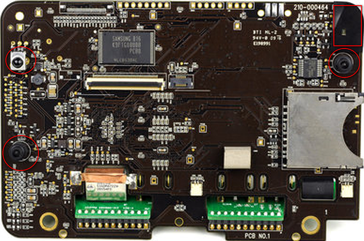Schaut man auf TheRooster2000 Bild links auf der Frontblende im unteren Drittel neben dem Touchscreen und rechts im oberen Drittel neben dem Touchscreen, so sieht man, dass dort de Schwarzlack kreisförmig ausblieb. Oben rechts in der Ecke der Frontblende ist das Plastik sogar komplett durchsichtig (Helligkeitsmesser).