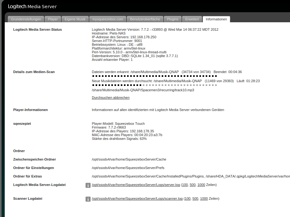 - SqueezeBox Server läuft auf: HS-210