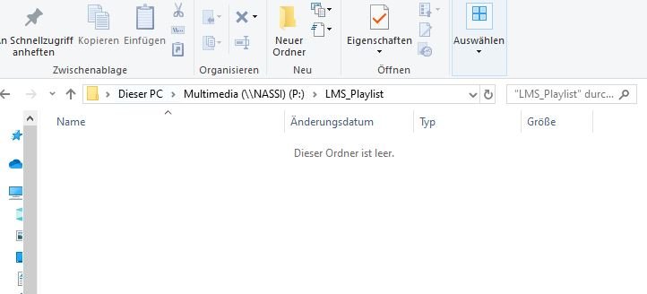 Danach habe ich das NAS und den Raspberry neu gestartet und .... leider keine Veränderungen zu vorher. Playlisten landen einfach nicht im LMS_Playlist Ordner. :x