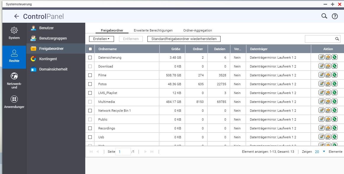 - Bei mir ist die folgende Einstellung drin. Damit ist das komplette Multimedia-Verzeichnis auf dem NAS freigegeben.