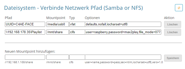 mit max2play kenne ich mich zu wenig aus, aber die mount Parameter für usb sind Quatsch. Die gelten für ein cifs mount.
