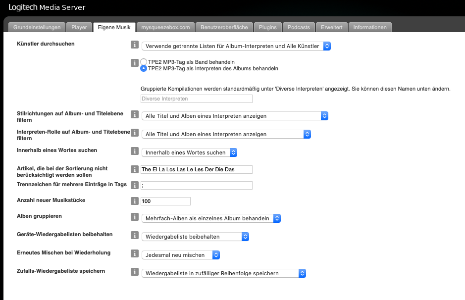 Hier mal meine Einstellungen zu "Eigene Musik":