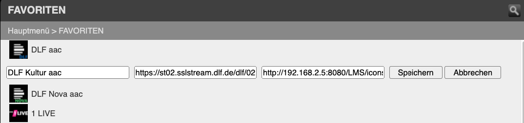 Du kannst Radiostreams im LMS-Webinterface (LMS Configure/Player settings) direkt unter Favoriten eingeben und sie benennen, Unterordner sind auch möglich.