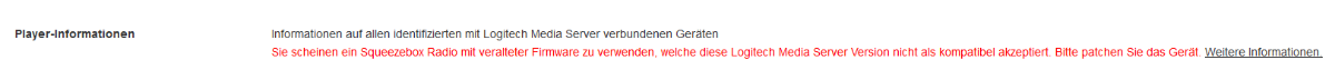 Seit dem Update auf LMS 8.0 bekomme ich eine Meldung das die FW meiner Squeezeboxradions veraltet wäre und ich ein Patch aufspielen soll. Bisher habe ich bei den Radios (... ich habe 3 Stück laufen) noch keine Beeinträchtigung feststellen können. Ist es sinnvoll das Pach aufzuspielen oder soll eich es lieber so laufen lassen?