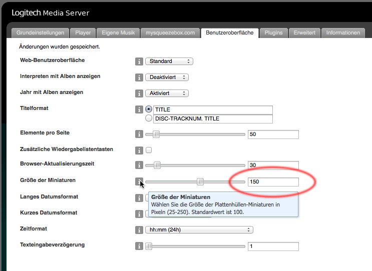 Squeezebox Classic Webinterface