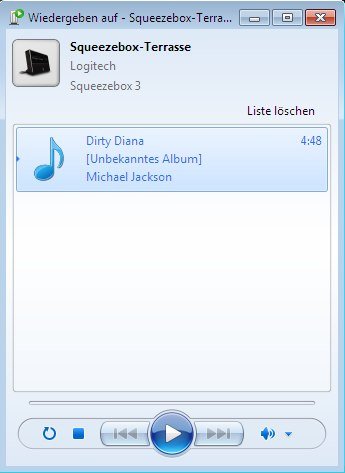 Das klappt auch schon soweit, daß sich ein Windows Media-Player Fenster öffnet und der Titel sogar im Squeezebox-Display erscheint und auch in der Bedienoberfläche erscheint, aber er spielt den Song einfach nicht ab!..