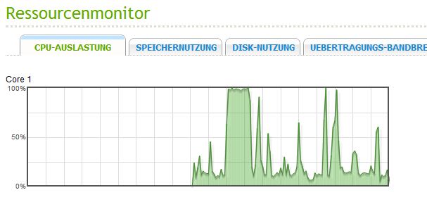 100 % Auslastung, wenn ich Musik suche auf dem NAS, und die anderen hohen Punkte (über 50%) sind beim Stöbern nach Musik. Wenn Musik oder Radio abgespielt wird, ist der Pegel relativ weit unten.