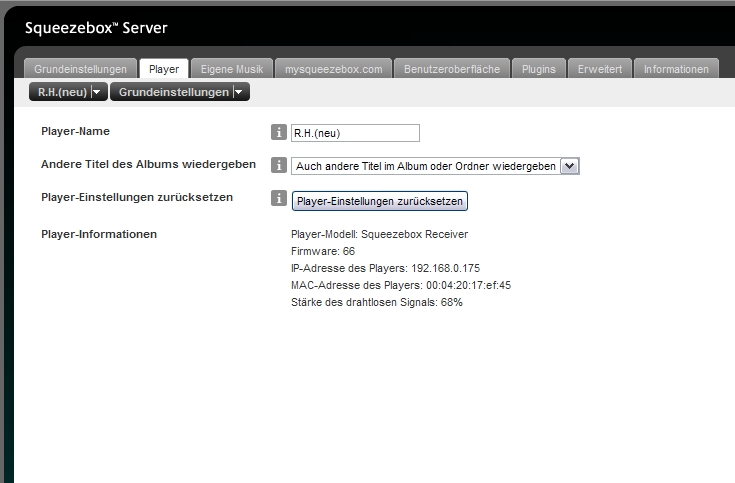 Also das Registerblatt "Player" anwählen.