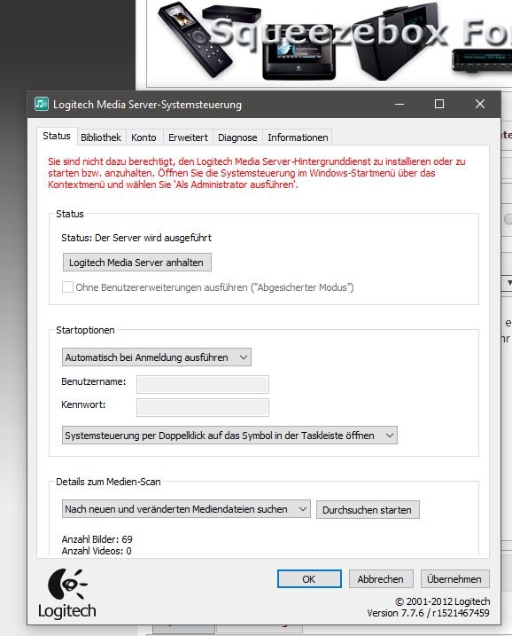 - SqueezeBox Server läuft auf: QNAP TS 210 und/oder PC mit WIN7