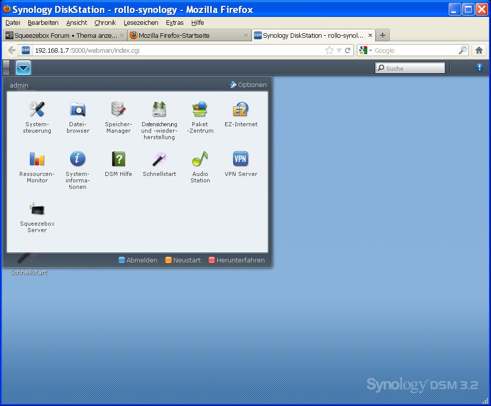 SqueezeBox Server läuft auf: Synology NAS, DS111, zufriedenstellend schnell und stabil