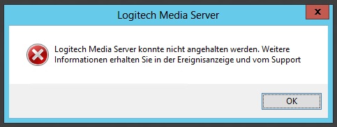- Logitech Media Server konnte nicht angehalten werden. Weitere Informationen erhalten Sie in der Ereignisanzeige und vom Support.