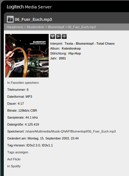 Was ich anfangs mit dlna meinte: Mit dem Fritz-phone komme ich sofort auf die dateien und das Ding dudelt die auch sofort ab. Out of da box! nur Squeezy ziehrt sich, die Zicke!