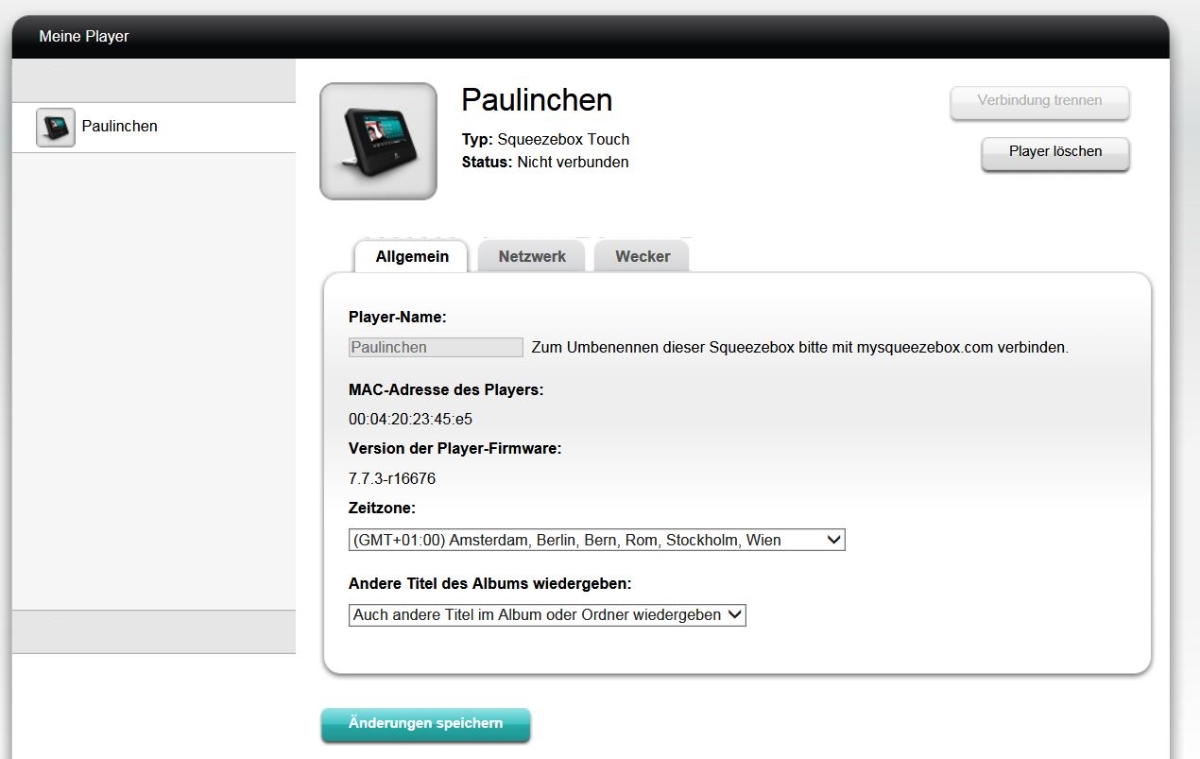 Auf mysqueezebox.com wird mir meine SBT als "nicht verbunden" angezeigt, gleichwohl spielt sie.
