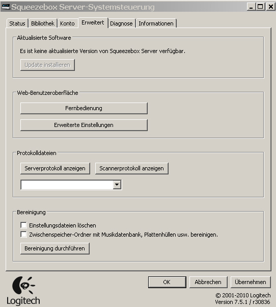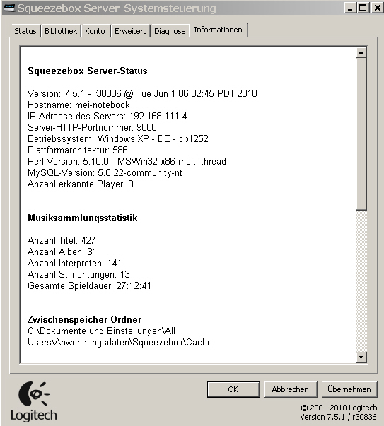 SqueezeBox Server läuft auf: XP SP_3