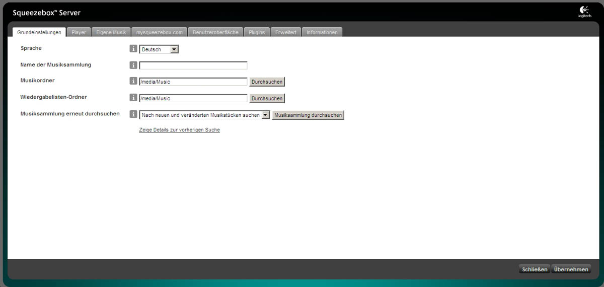 SqueezeBox Server läuft auf: Nas-Netgear Duo mit 2GB.