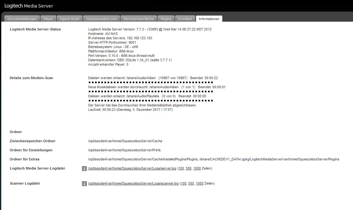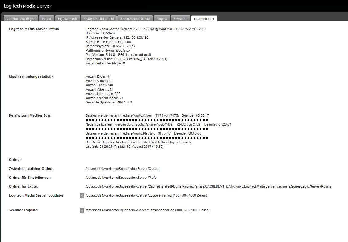 nach Jahren reibungslosen Einsatzes meiner Kombi aus Logitech Transporter und QNAP TS-469L mit einer alten Firmware (QTS 4.0.7) auf Basis von LMS 7.7.2 musste das NAS vollständig neu aufgesetzt werden, d.h. jetzt mit aktueller QTS (4.3.3), aber noch der alten LMS 7.7.2. Das soll auch so bleiben (never change a runnig system).