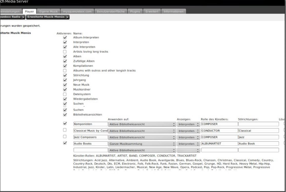 Auch das findest Du an der Squeezebox selbst. Nämlich unter "Eigene Musik".Hab gerade gefunden, dass ich das erweiterte Musik Menü nicht finde. Warum wird denn das nicht angezeigt? Wo kann ich denn das aktivieren? Unter Palyer liegt das nicht