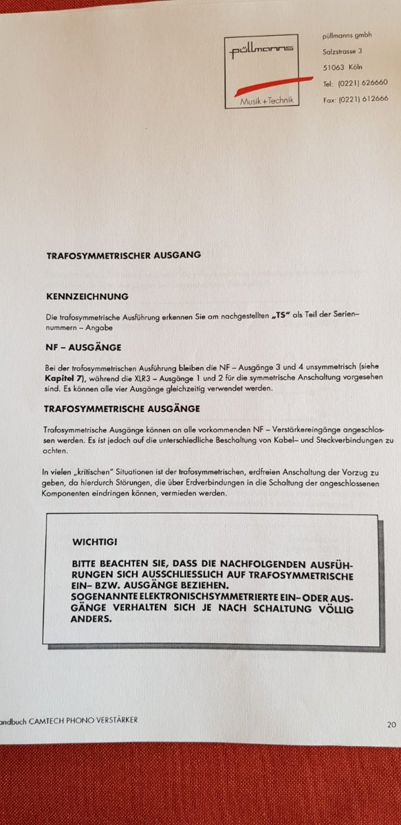 Muss allerdings dann mit Cinch in meinem Preamp, also quasisymmetrisch, da er keine XLR-Eingänge hat, nur Ausgänge.