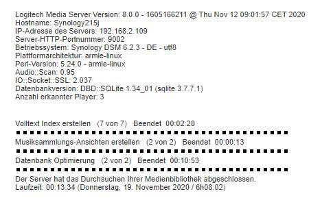 SqueezeBox Server läuft auf: Synology DS215j LMS 8.0.0